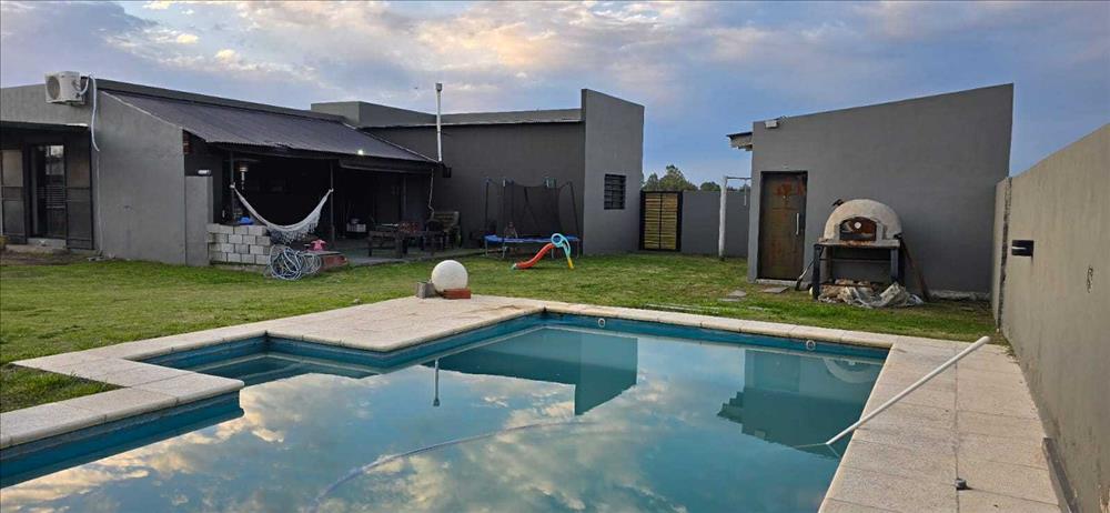 Propiedad ubicada en Barrio Don Genaro En esquina de Los Ébanos Viví la tranquilidad que buscás en un barrio muy sereno, a solo 2 km del centro y de la laguna . En un lote en esquina de 24 x 32 (768 m²), esta casa combina amplitud y comodidad con 175 m² cubiertos. Ambientes que invitan a disfrutar: - Living luminoso para relajarte - Comedor integrado a cocina, ideal para compartir momentos - Tres dormitorios, uno con baño en suite y vestidor - Baño completo con ante baño - Lavadero independiente - Galería cubierta para reuniones al aire libre - Galpón/quincho multifunción El exterior es un verdadero plus: pileta de 8 x 4 con playa húmeda para refrescarte y disfrutar del sol todo el verano Una oportunidad única para quienes valoran el confort, los espacios amplios y la vida tranquila, sin resignar cercanía a los puntos clave de la ciudad. Consultanos para coordinar tu visita y conocé tu próxima casa.