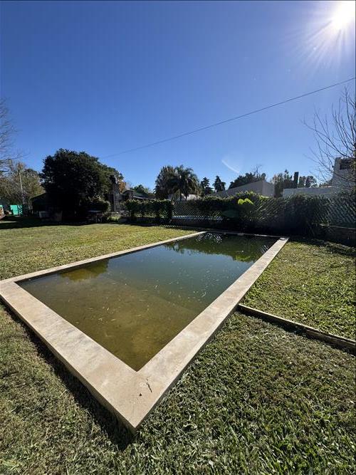 Vende terreno con pileta y edificación.- Ubicado precisamente en calle Arturo Illia 883, en una zona muy tranquila y con un entorno lleno de naturaleza.- Se compone de un terreno de 486 m2 delimitado y cercado.- Con un ingreso único al terreno a traves de un portón de doble hoja metálico.- En el final del terreno se encuentra una edificación con aberturas aluminio linea modena y cerramiento de rejas, con una pequeña pergola en su ingreso, en el interior amoblamiento de melamina de alacena y bajo mesada para guardar filtro y bomba de la pileta.- Baño con sus respectivos accesorios y sector de ducha.- En el exterior y aprovechando los espacios hay una guardilla y mesada con lavatorio.- Servicios: Luz, agua por perforación, gas pasa la red pero aún no esta instalado y sistema cloacal.-